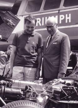 Claude Dubois and Donald Stokes, chairman of the Leyland group, looking quite