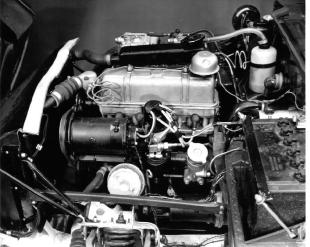 The first development stage of the 1147cc engine. Note the aluminium cylinder head and the seperate oil filler extension next to the distributor.