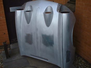 This is the restored bonnet. The middle section was replaced and the auxillary headlamps were returned to their former position.